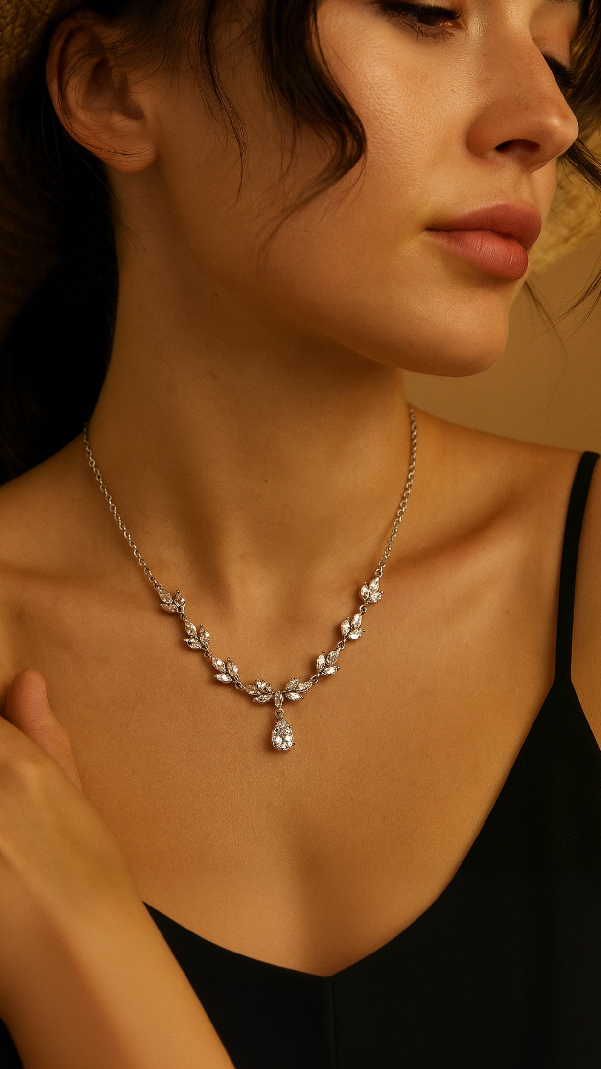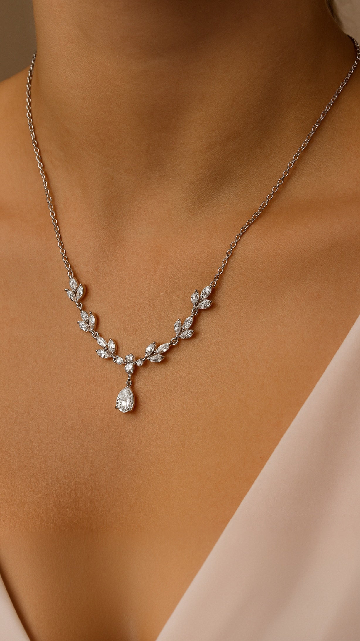 The necklace looks lovely and matches up with the ear rings perfectly, this is my 2nd purchase from Diamoray and they dont dissapoint.